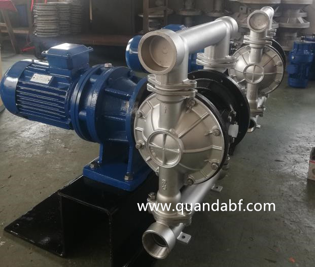泉達生產的DBY電動隔膜泵是一種新的泵,在市場上逐步取代部分離心泵、螺桿泵,應用再石化、陶瓷、冶金等行業,產品的結構設計理參考美國的ABEL公司。其產品使用在低壓,出口壓力≤3kgf/cm2的場合.DBY型電動隔膜泵是本廠生產的一種新型輸送機械,采用電動機通過減速機減速驅動,對于各種腐蝕性液體,帶顆粒的液體,高粘度、易揮發、易燃、劇毒的液體,均能以抽光吸盡。